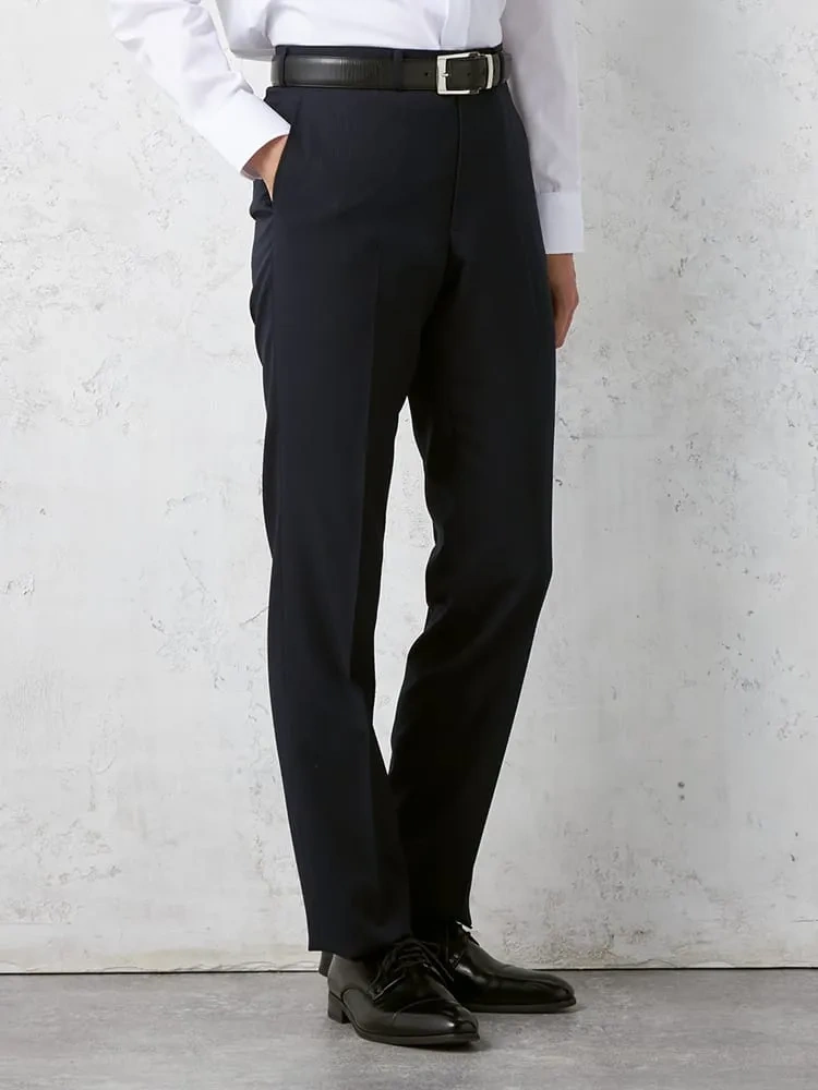 パンツの腰回りに生地の折り込みがなく、スッキリとしたシルエットを実現します。シンプルで洗練された印象を与え、すっきりとした着こなしが可能です。