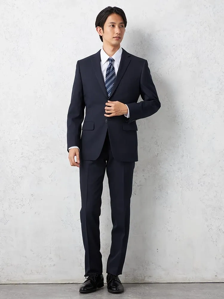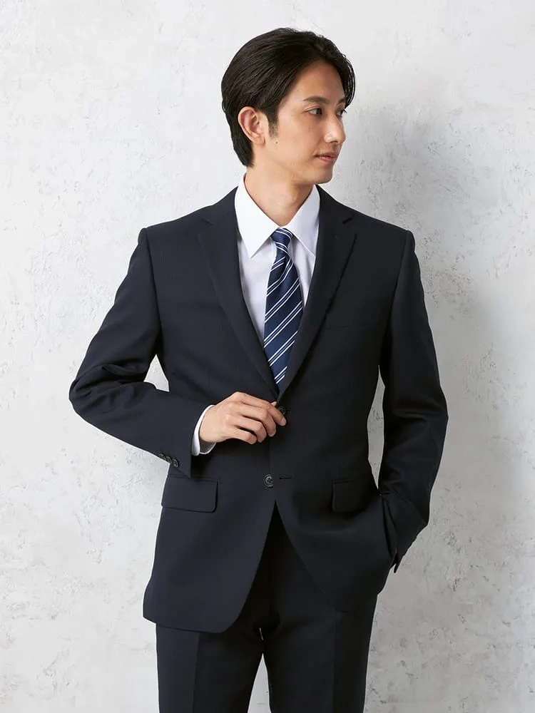 【即納】スーツ2つボタン【WEB限定】上下ウォッシャブルネイビーストライプ
