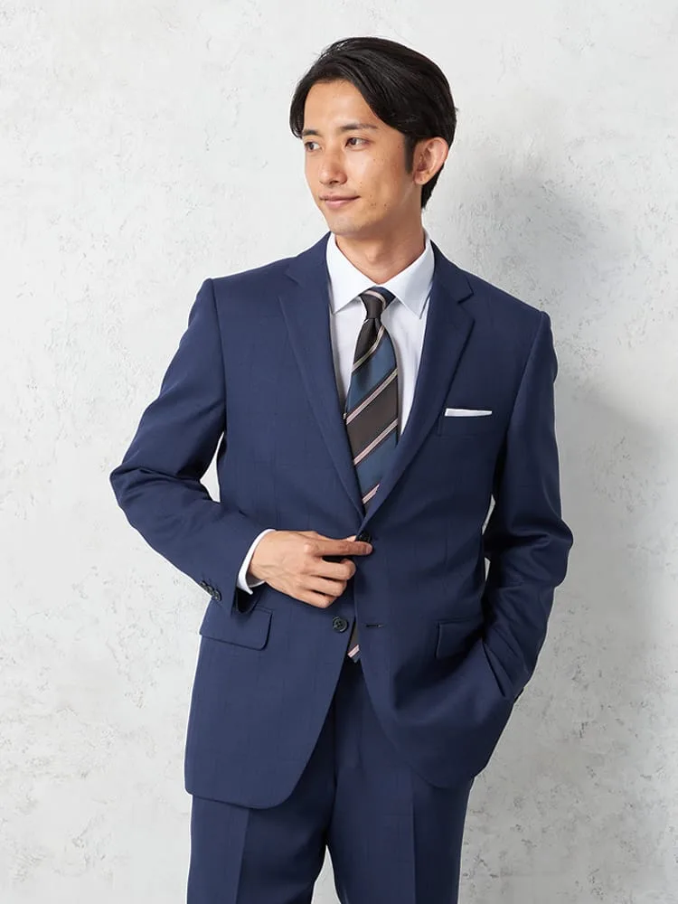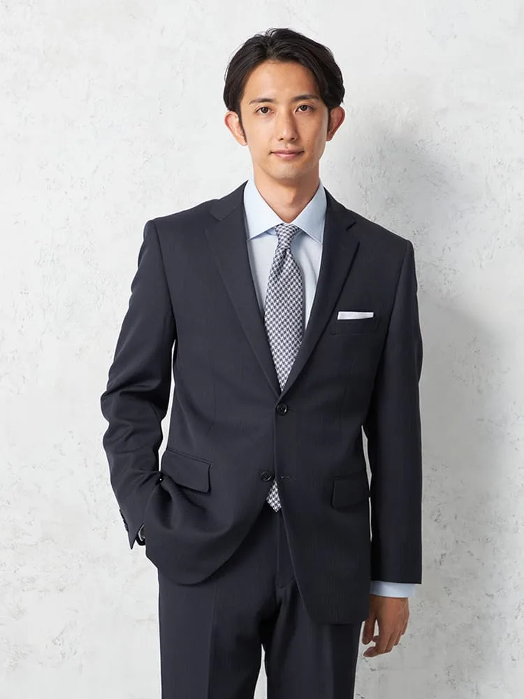 【即納】【WEB限定】スーツ 2つボタン ネイビー シャドウストライプ 上下ウォッシャブル 3シーズン対応