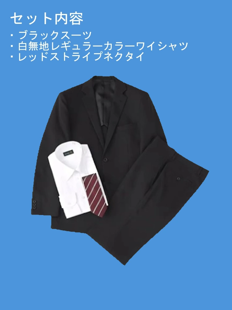 入社式や入学式にもおすすめの褒められブラックスーツセット