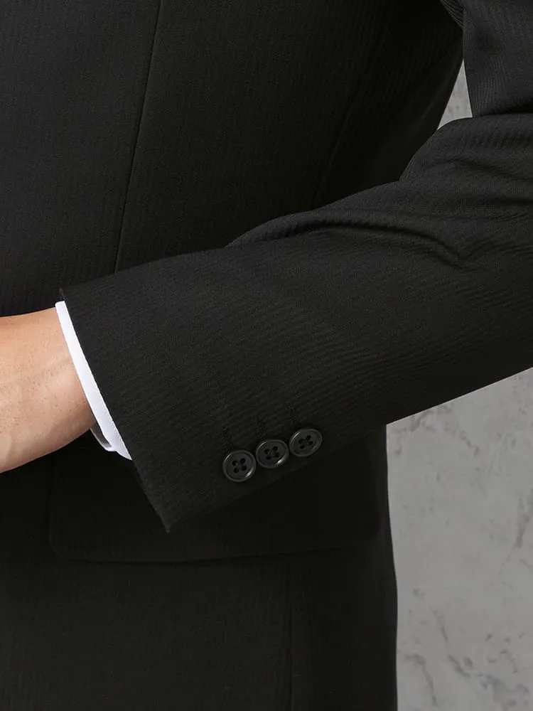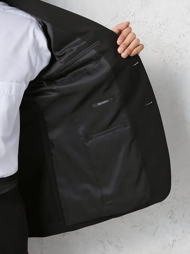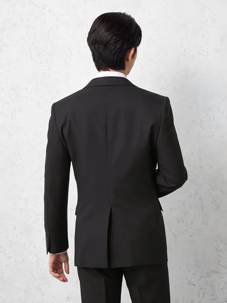 【即納】スリーピーススーツ2つボタン【WEB限定】上下ウォッシャブルブラックシャドウストライプ3シーズン対応