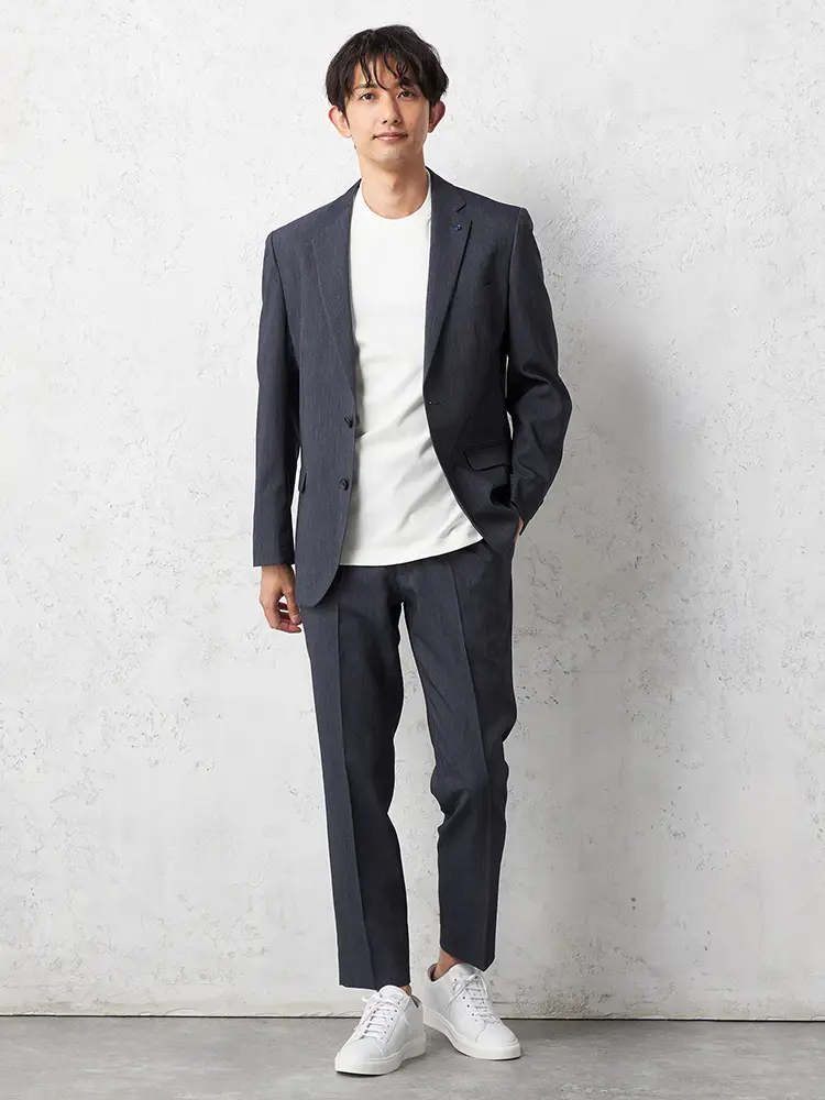 柔らかな着心地でシワになりにくく、デスクワークや移動時も快適。