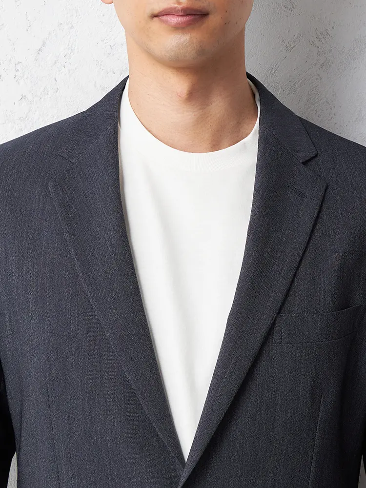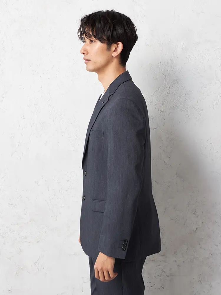 自宅で洗えるウォッシャブル仕様に加え、軽やかな半裏仕立てとセンターベントで、
