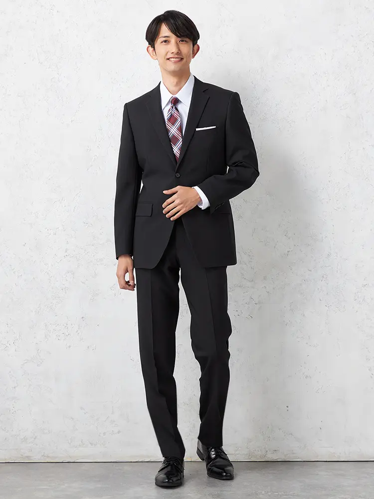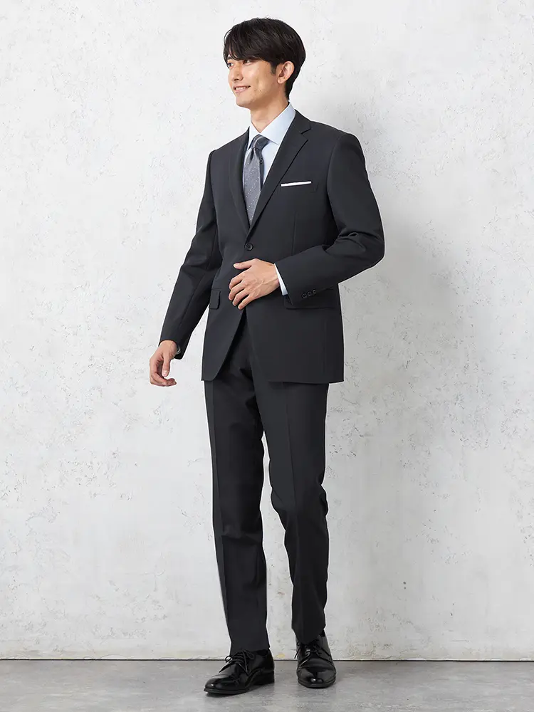 【即納】スーツ2つボタン【WEB限定】上下ウォッシャブルM.グレー小柄3シーズン対応