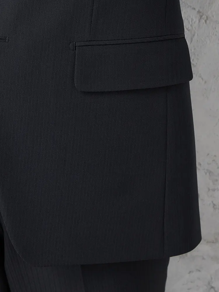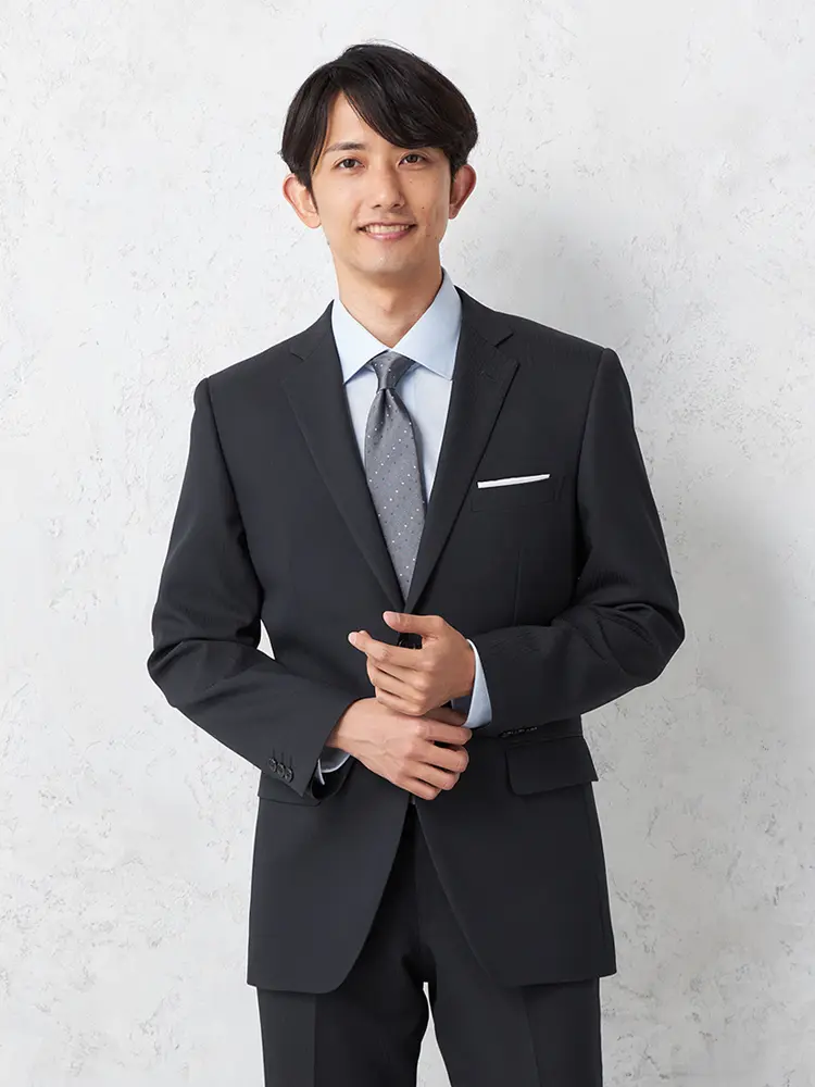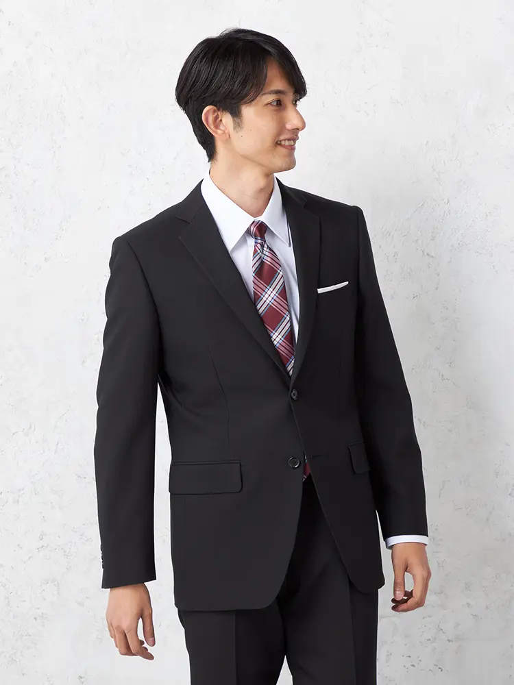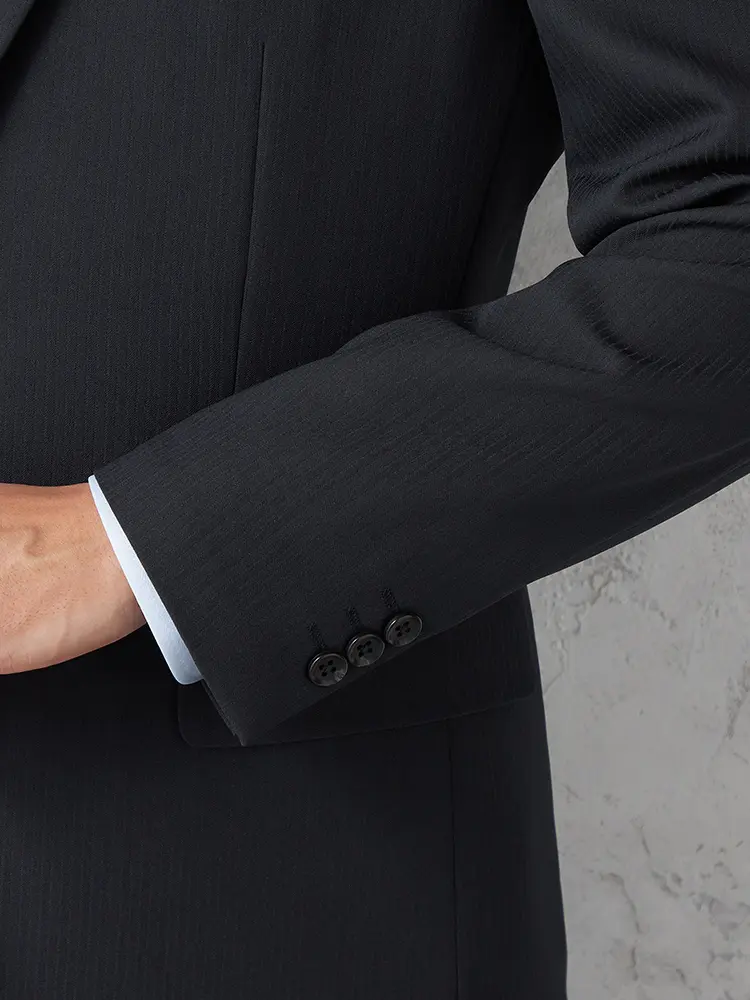 【即納】スリーピーススーツ2つボタン【WEB限定】上下ウォッシャブルブラックシャドウストライプ3シーズン対応