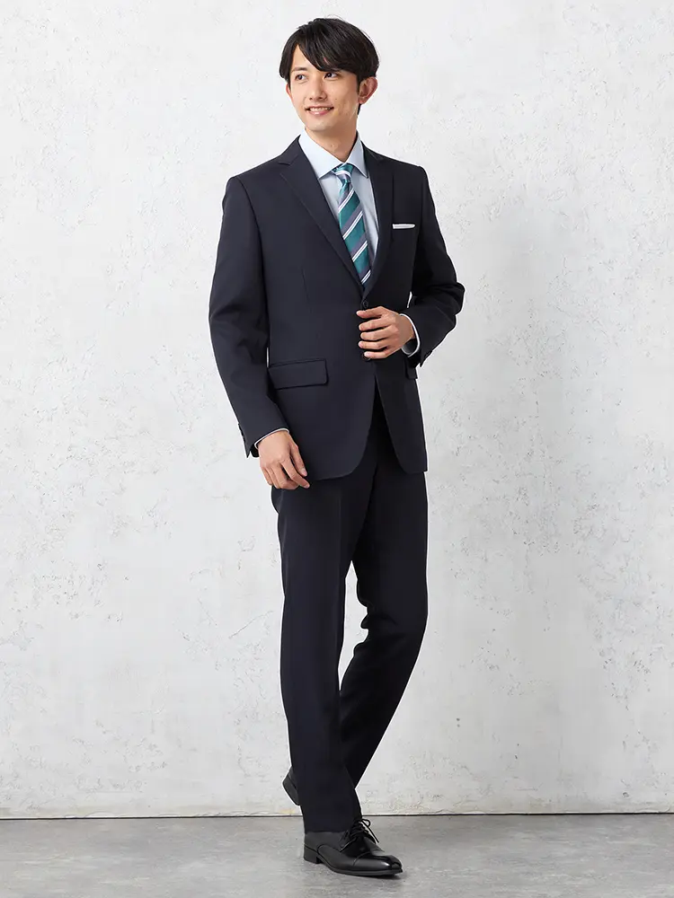 【即納】スーツ2つボタン【WEB限定】上下ウォッシャブルネイビーストライプ