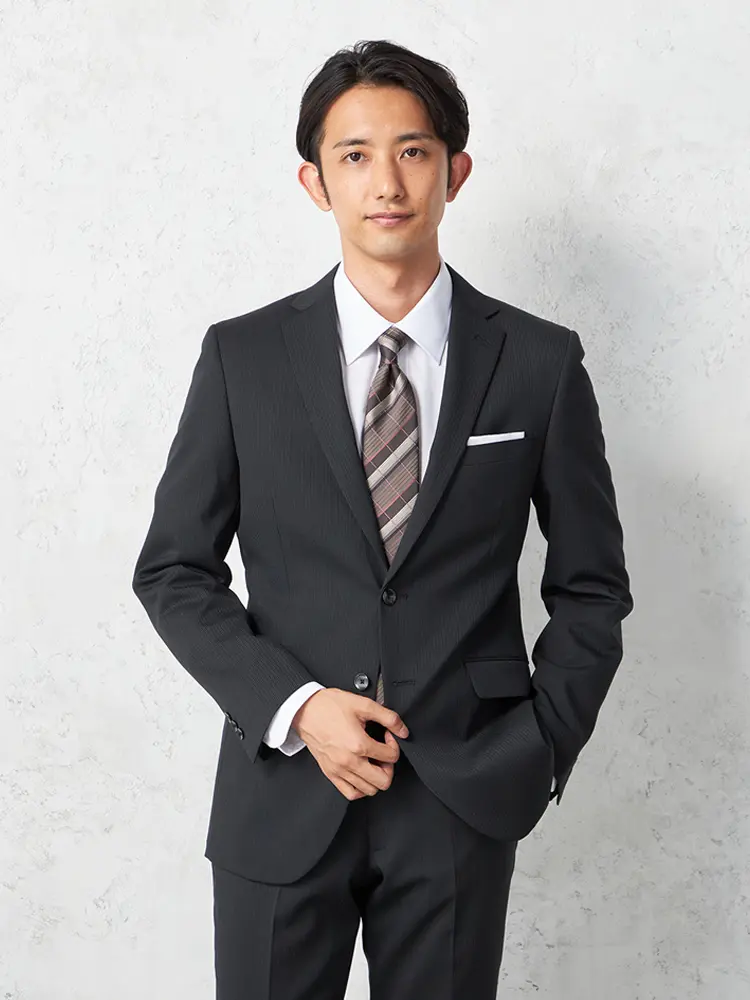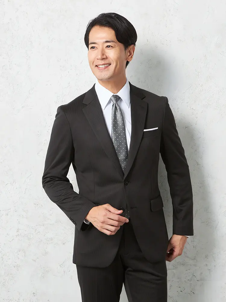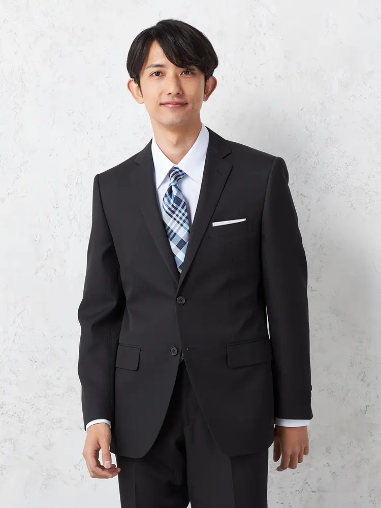 【即納】スリーピーススーツ2つボタン【WEB限定】上下ウォッシャブルブラックシャドウストライプ3シーズン対応