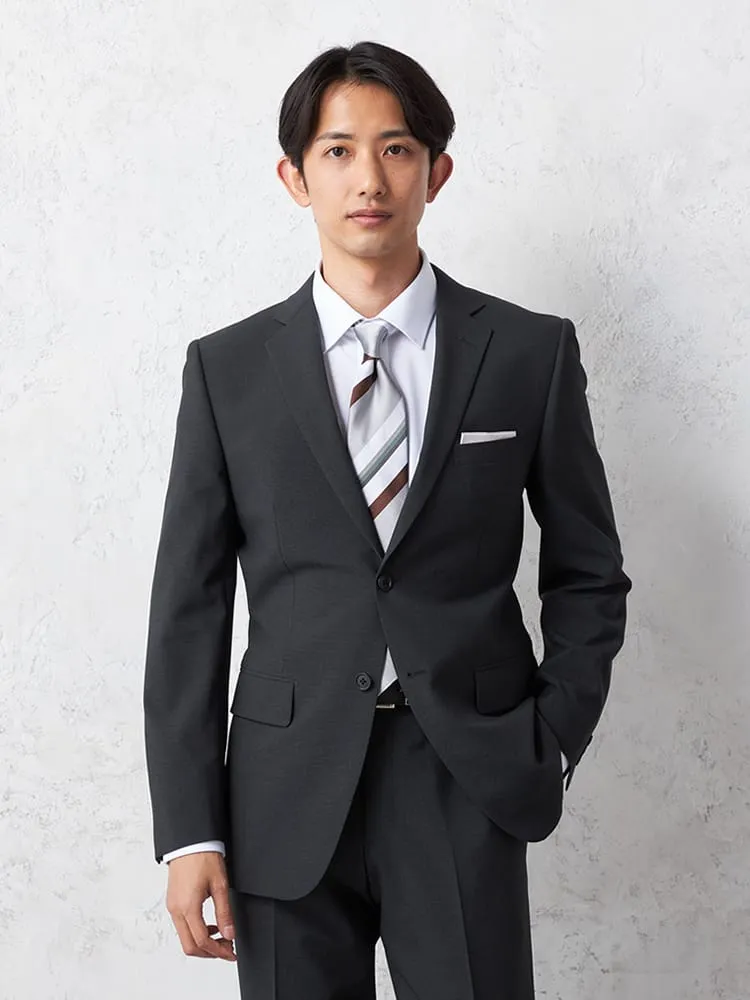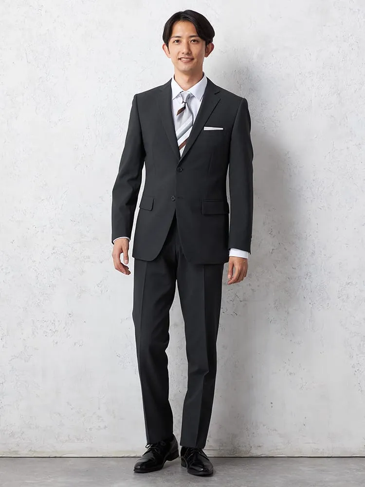 【即納】スーツ2つボタン【WEB限定】上下ウォッシャブルM.グレー織柄無地3シーズン対応
