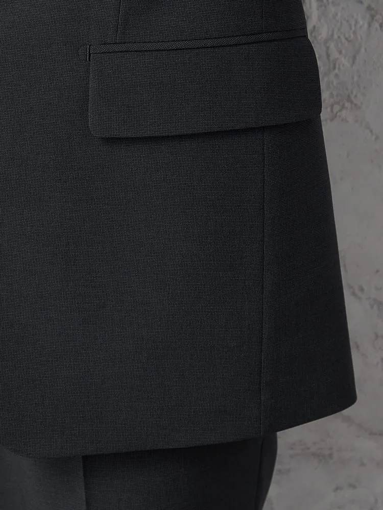 切り込みが1本のセンターベントデザインです。細身でスッキリとしたシルエットが特徴で、快適な着心地を提供します