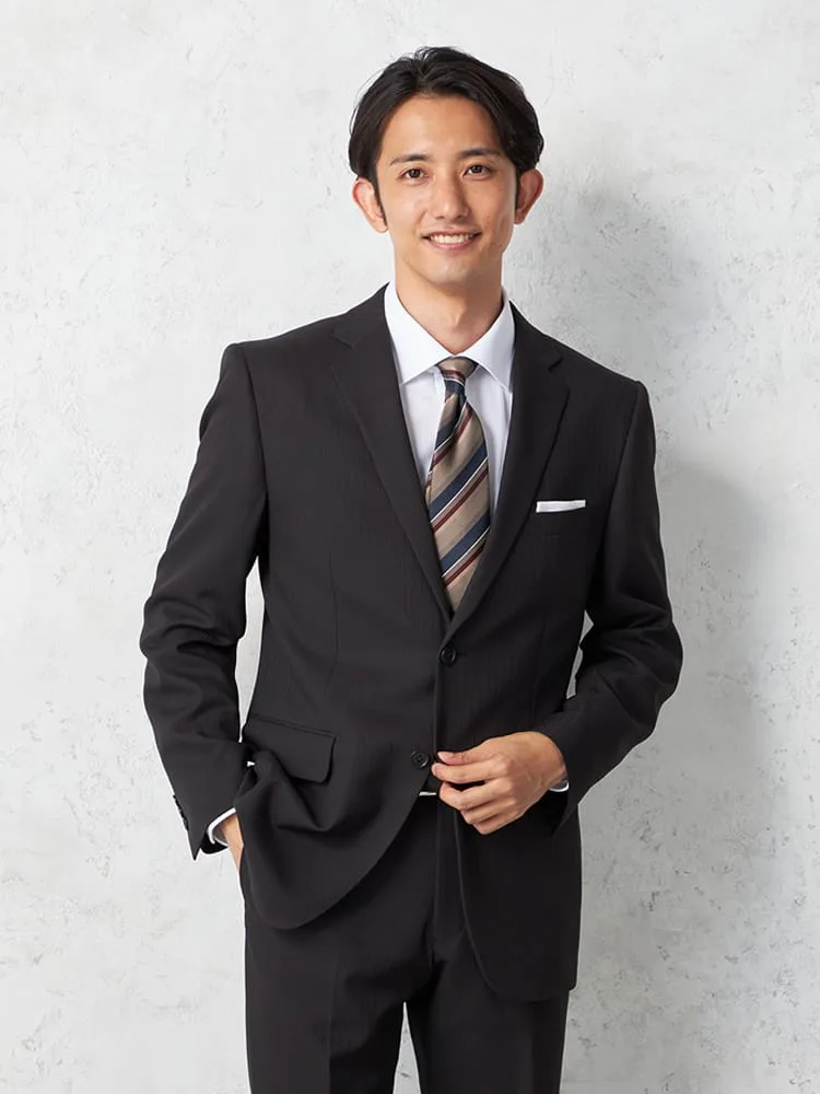 【即納】スーツ2つボタン【WEB限定】上下ウォッシャブルブラックストライプ3シーズン対応
