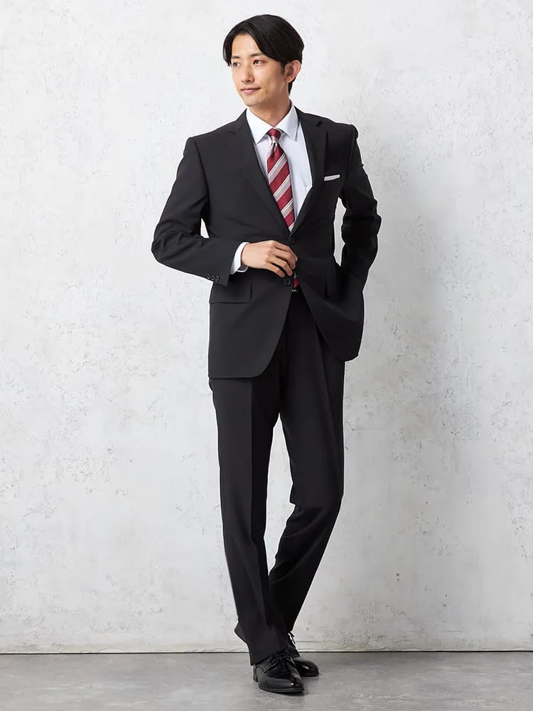 【即納】スーツ2つボタン【WEB限定】上下ウォッシャブルブラック小柄3シーズン対応