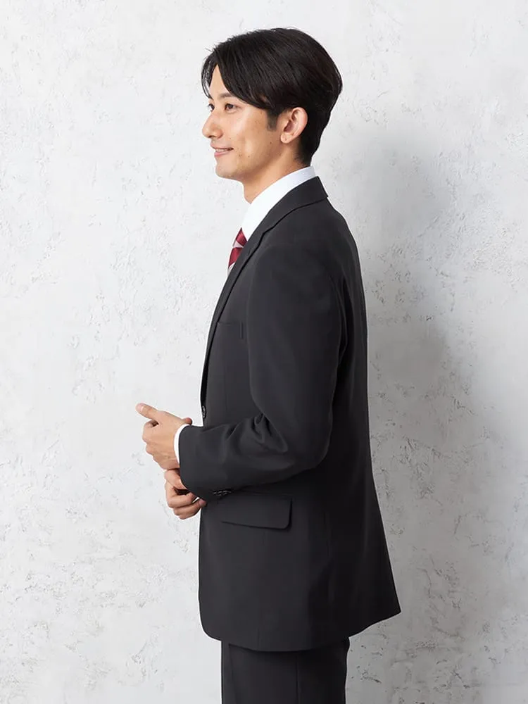 切り込みが1本のセンターベントデザインです。細身でスッキリとしたシルエットが特徴で、快適な着心地を提供します