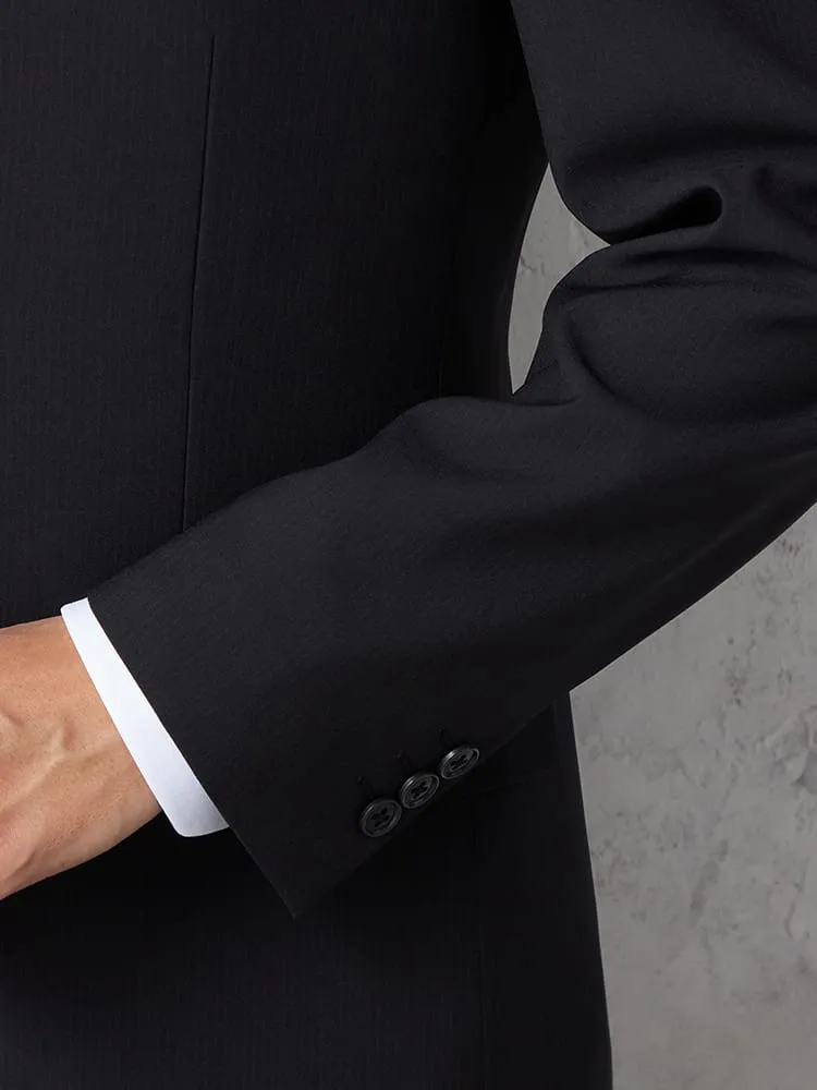 【即納】スリーピーススーツ2つボタン【WEB限定】上下ウォッシャブルブラックシャドウストライプ3シーズン対応