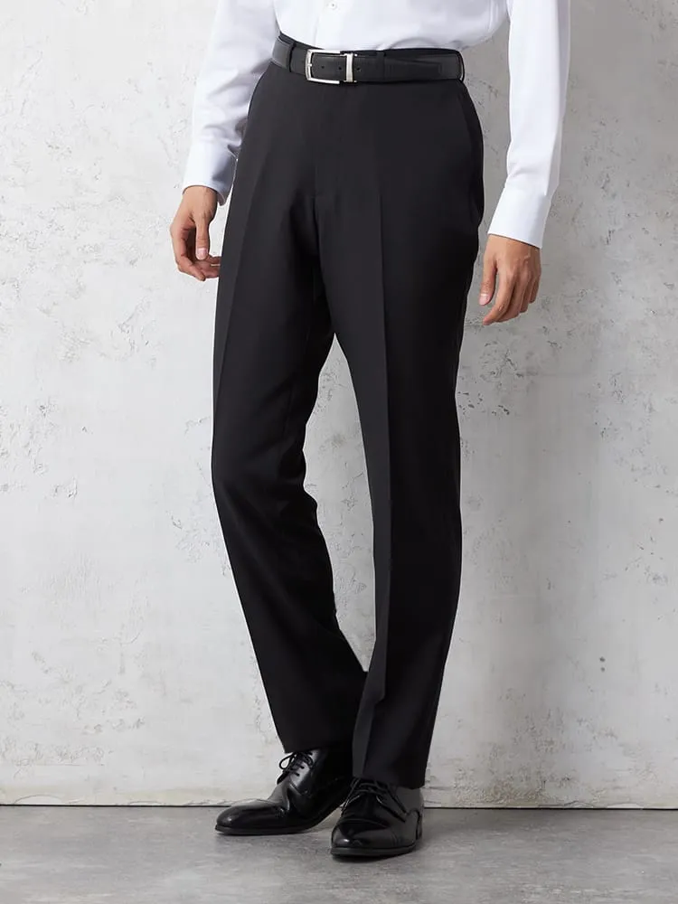 パンツの腰回りに生地の折り込みがなく、スッキリとしたシルエットを実現します。シンプルで洗練された印象を与え、すっきりとした着こなしが可能です。