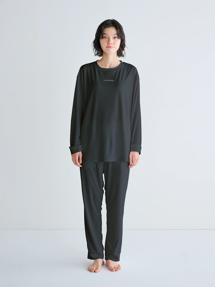 【2,800円引き!4/1(水)09:59まで】【YOKUNERU】リカバリーウェア 上下セット 男女兼用 長袖Tシャツ+ロングパンツ 疲労回復 血行促進 遠赤外線 快眠 NANOMIX【一般医療機器】(ブラック)